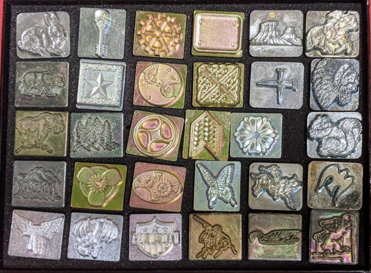add your name or interest stamps. examples are, USMC, BUTTERFLY ,MOTORCYCLES, and the list goes on with over 300 stamps to choose from.
